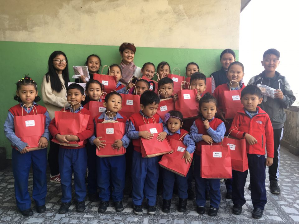 もちろん、中身のプレゼントにも同じように、名前のシールを貼っておきます。それを、カトマンズ到着したのち、学校訪問までに写真の状態にセットしておくのです。実際には、これにさらに、学校全体に届ける書籍、学用品、衣料品、お菓子、スタッフの方々への小さなお土産など、だいたい2倍の量に膨らみます。私たちのトランクの中身のほとんどはこれらの物資です。