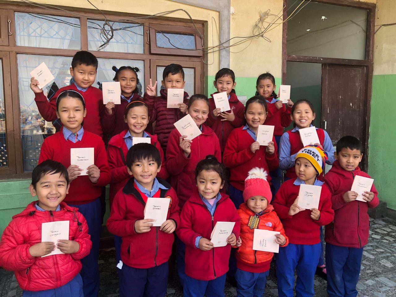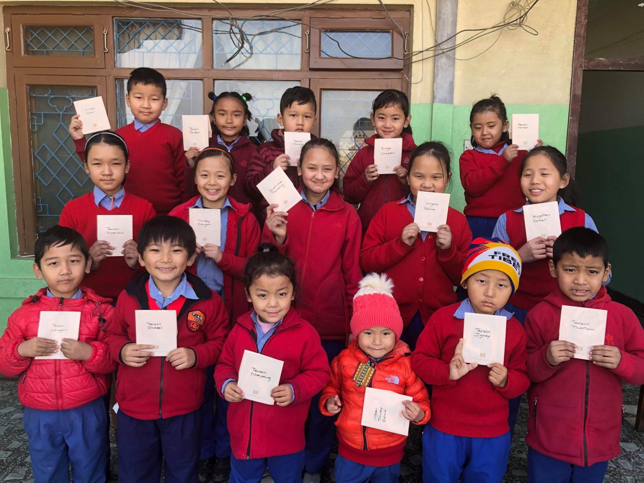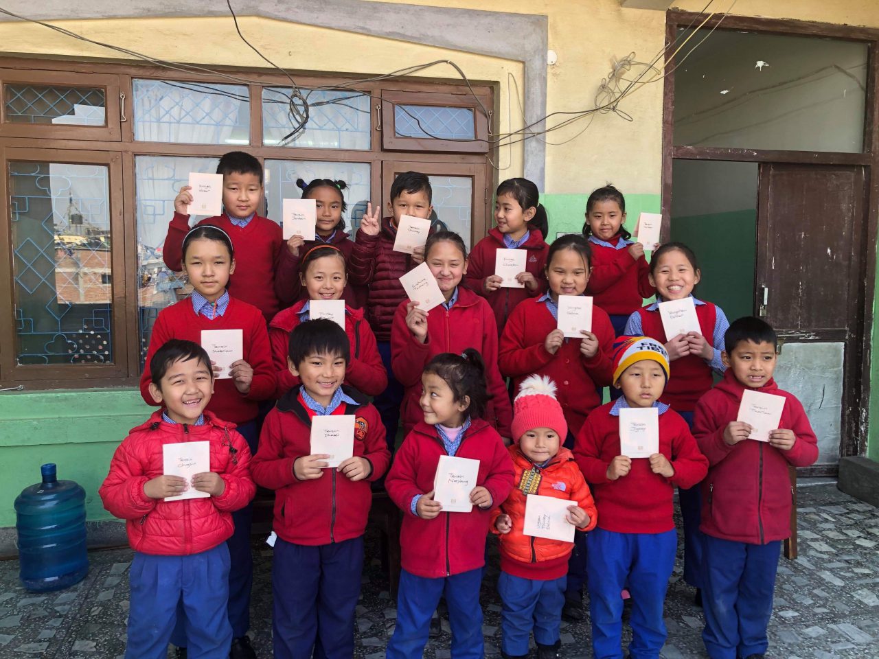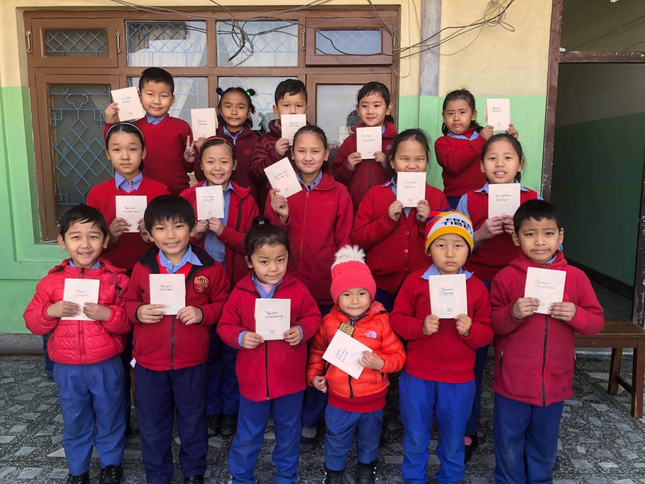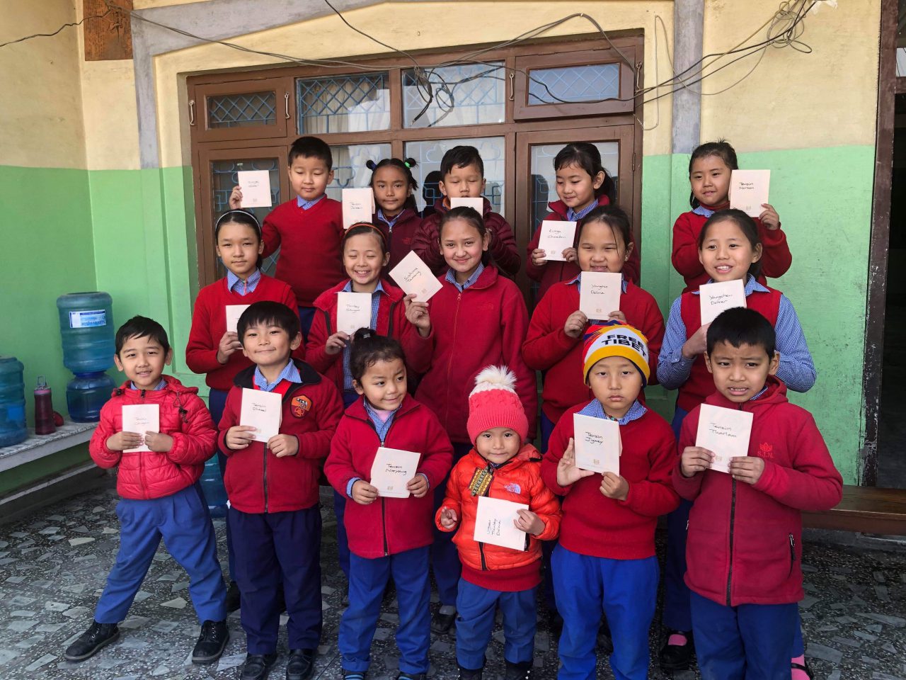 子供たちが手にしている封筒の中には、私たちが日本から送った写真(昨秋訪問時のもの)と、新年のカードが入っているのですが、校長先生が子供たち銘々に手渡し、みんなの集合写真を撮って送ってくださいました。私たちの昨秋の訪問時から2ヶ月半しか経っていないのに、また成長した様子がうかがえます。学校は毎年1月いっぱい冬休み。今年は2月2日から新学期がスタートしました。冬休みを終えて、みんなとても元気そうです。